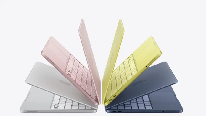 Il display è un pannello Liquid Retina da 13″ con supporto a 1 miliardo di colori e una luminosità di 500 nit. Una delle novità estetiche più rilevanti è l’assenza del notch: la fotocamera FaceTime HD da 1080p è integrata in una cornice superiore simmetrica e sottile. Il design è disponibile in quattro colorazioni: Argento, Indaco, Blush e Citrus. La Magic Keyboard, priva di Touch ID nella versione base per contenere i costi, presenta tasti coordinati al colore della scocca e si accompagna a un ampio trackpad Multi-Touch.